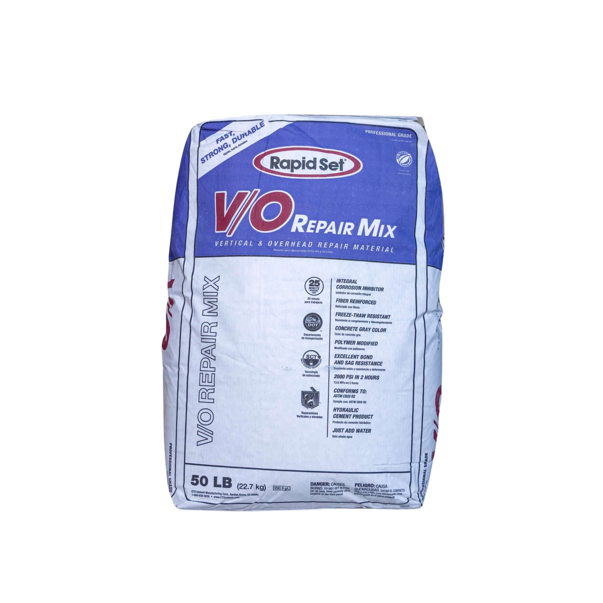 V/O Repair Mix is a high performance, polymer-modified structural repair material. Apply from 1/4" to 2" thick, and up to 6" thick on vertical applications and small spot repairs. Use for general horizontal concrete and spall repairs, including vertical and overhead applications. Conforms to: ASTM C928.
